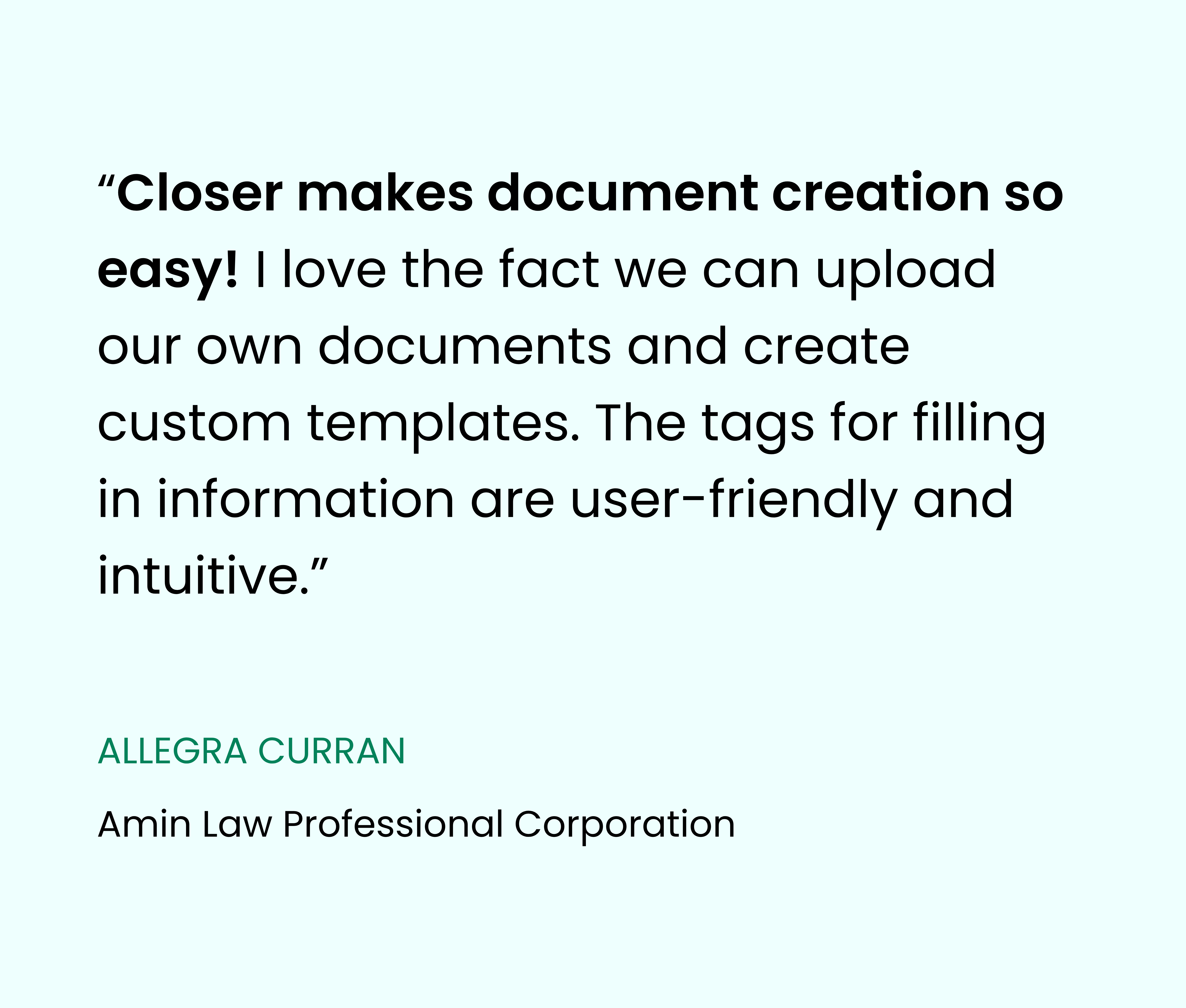 Your firm's custom documents are added to Closer at no cost, giving you immediate access to all your unique forms and precedents within the platform.
